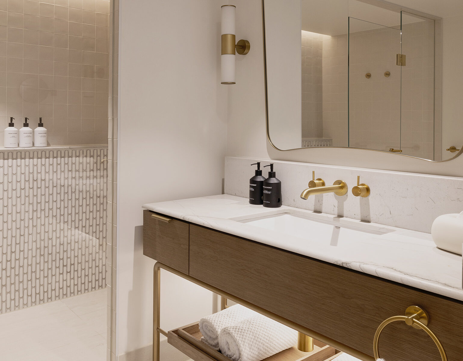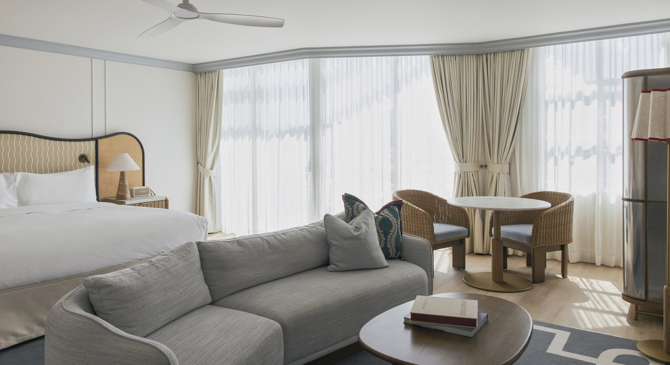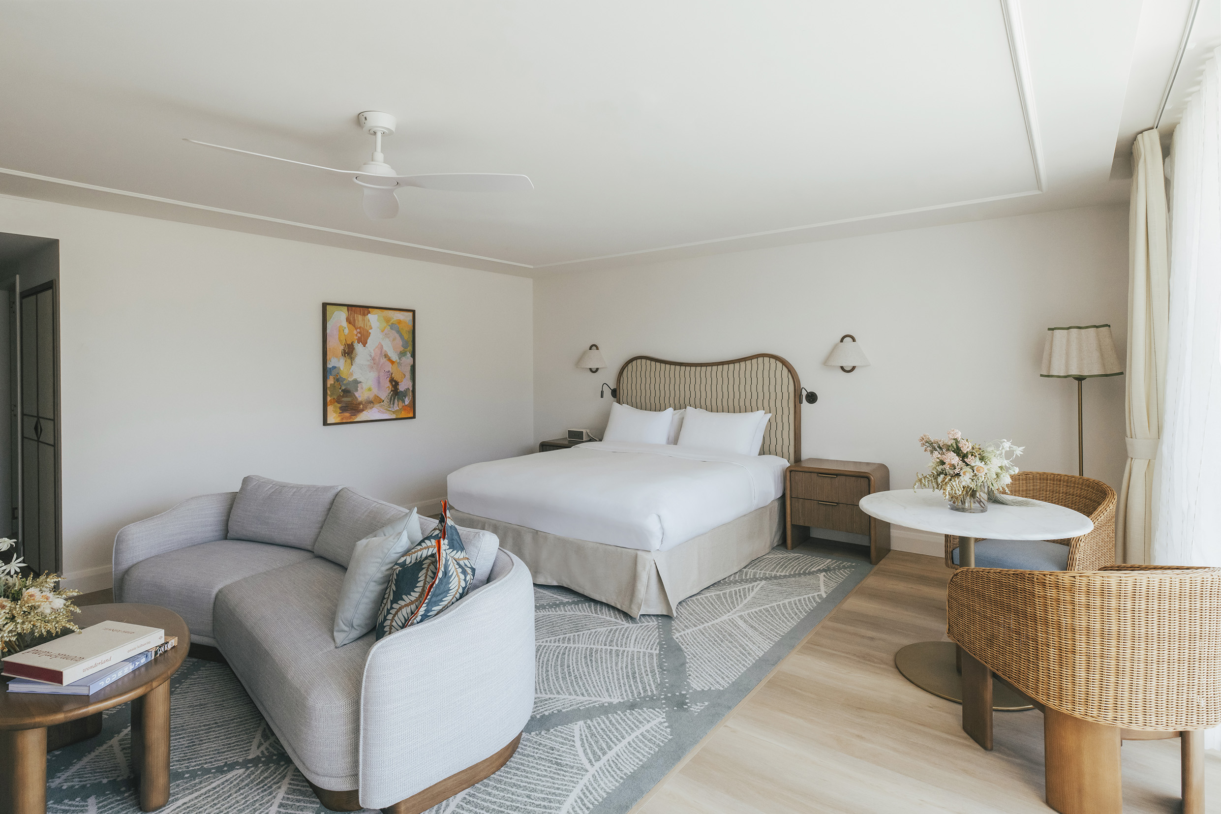 Designed by Mitchell & Eades, the interiors strike a balance between understated luxury and coastal ease – a palette that breathes with the landscape beyond. A king bed anchors the space, while graceful touches – natural textures, considered lighting, a palette drawn from sand and sea – create an atmosphere of quiet indulgence. A private terrace extends the living space outward, where sea breezes and river views become part of the daily rhythm.