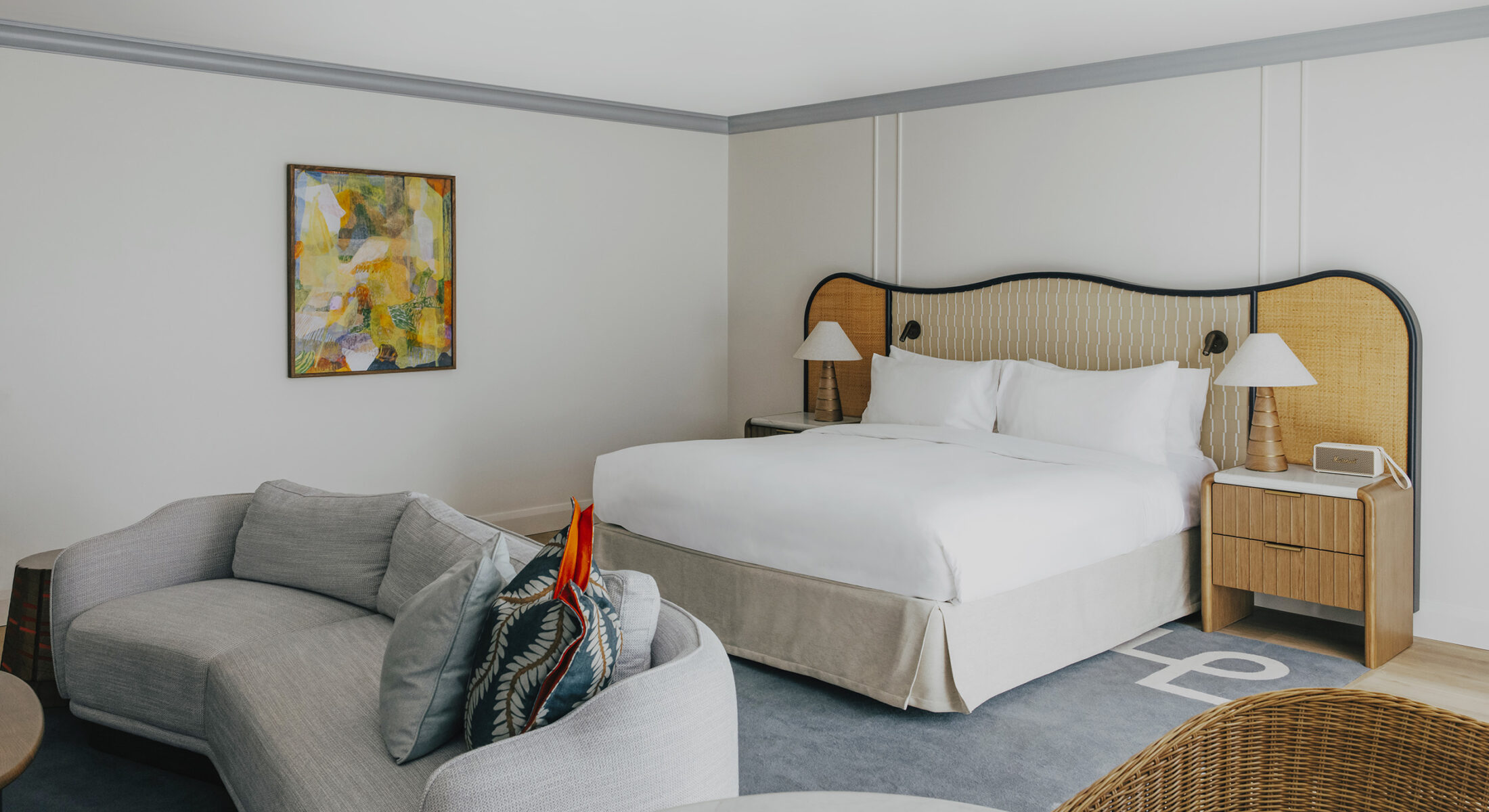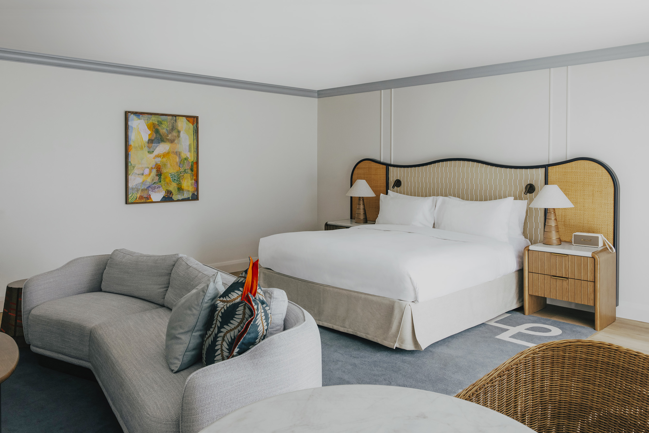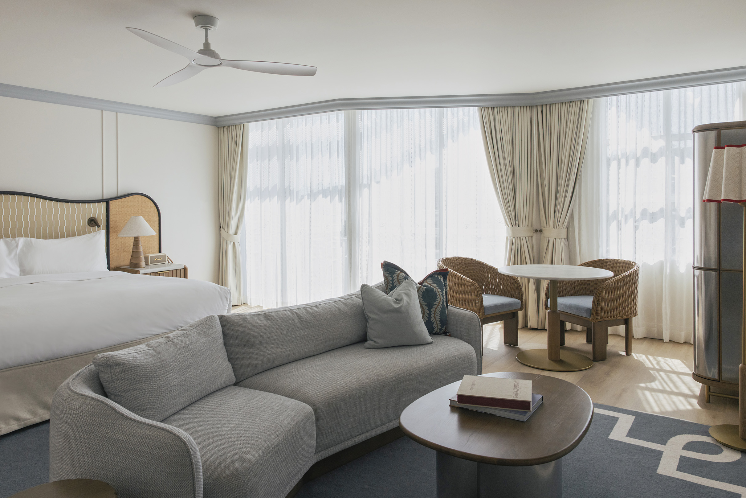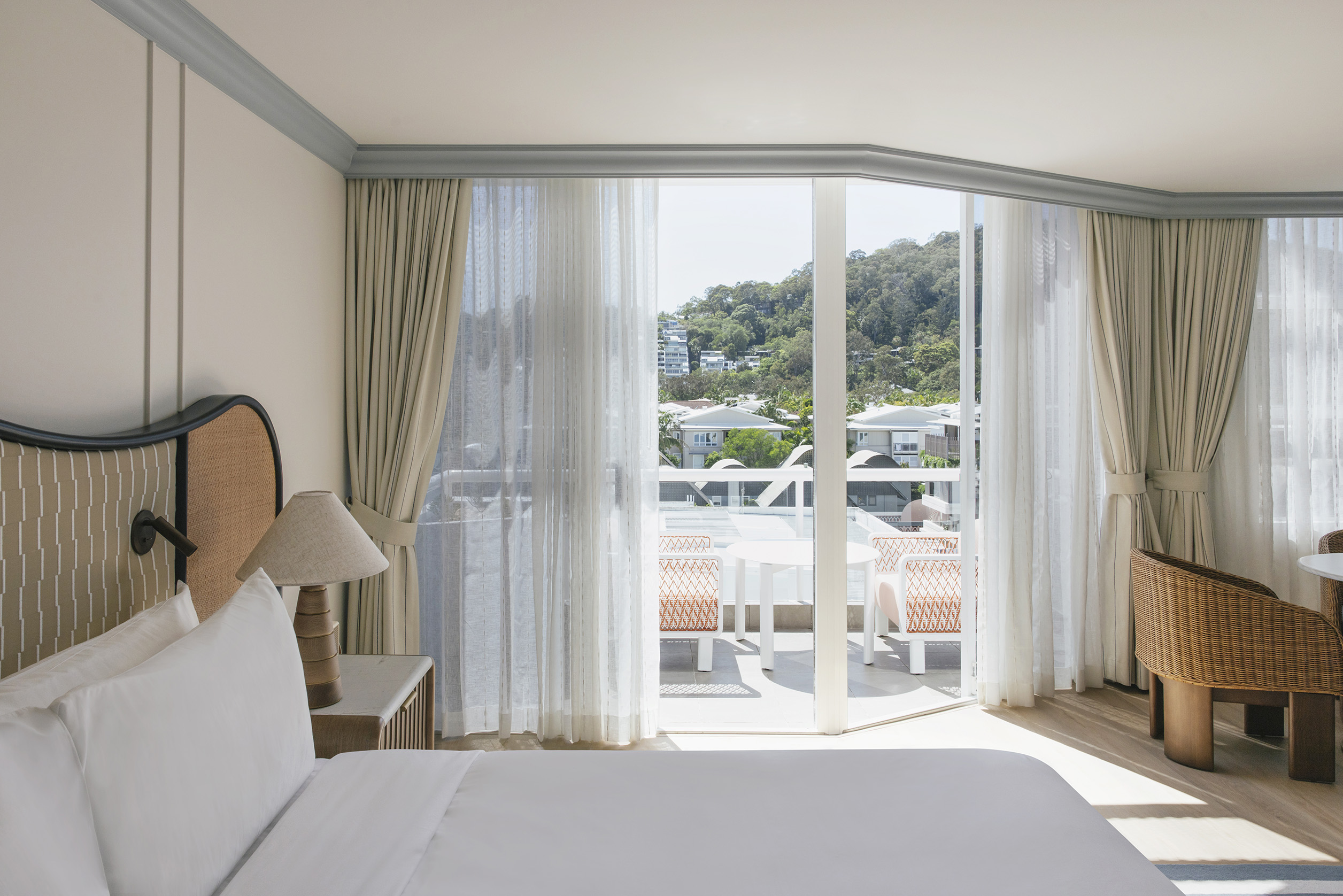 Located on our top floor, this premium junior suite claims its elevated position with authority – where village rooftops give way to coastal horizons and the rhythm of Hastings Street unfolds below like a private tableau.